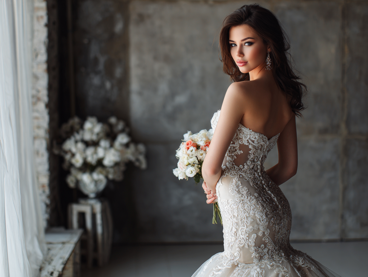 Первое правило успешной примерки — не пытаться угадать размер. Лучше ориентироваться на фактические параметры и не бояться подгонки. Берите с собой обувь, в которой планируете идти к алтарю, а также белье, максимально приближенное к свадебному. Это позволит адекватно оценить посадку и силуэт. Также полезно сделать макияж и прическу в приближённом к свадебному стиле — так будет проще представить полный образ.